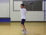 テークバックの距離をとろうとすると、写真のように、肩が入りすぎてしまう選手が多く見受けられます。