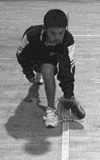 シングルキャッチの基本動作を習得する練習として、写真のように、軽くはずんだゴロを捕球してみましょう。